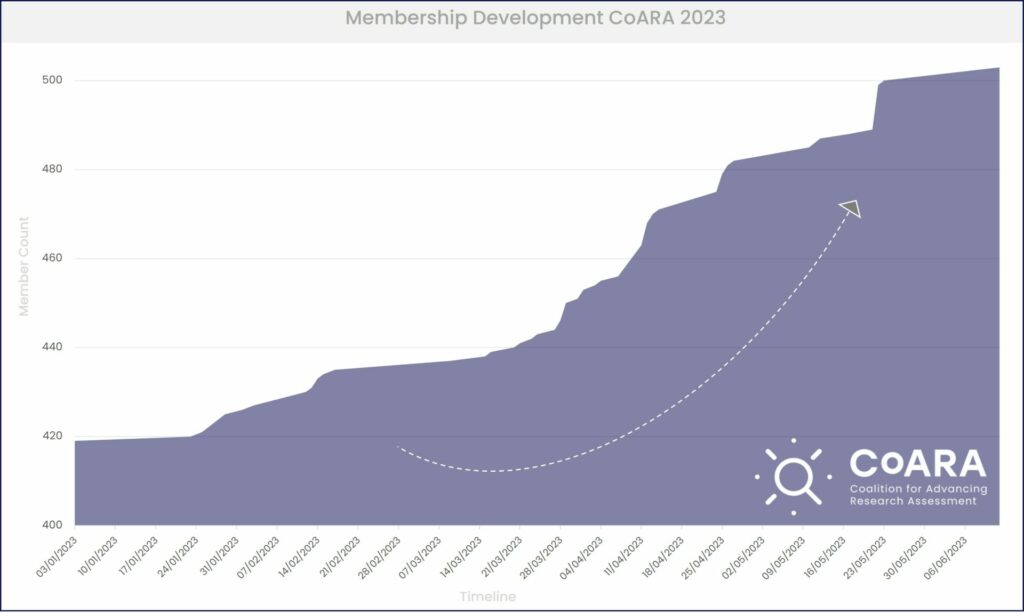 Inaugurated in December 2022, only a half year later CoARA counts 500 organisations member of the coalition. It is a remarkable achievement and given the rapid growth in support of CoARA this underscores the relevance of the mission in systematically reforming research assessment.